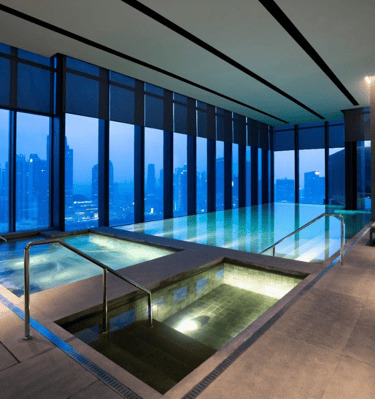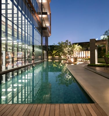 Discover luxurious all-suite apartments in Jakarta's central business district, where comfort meets urban sophistication amidst lush greenery and high-end amenities designed for modern living.